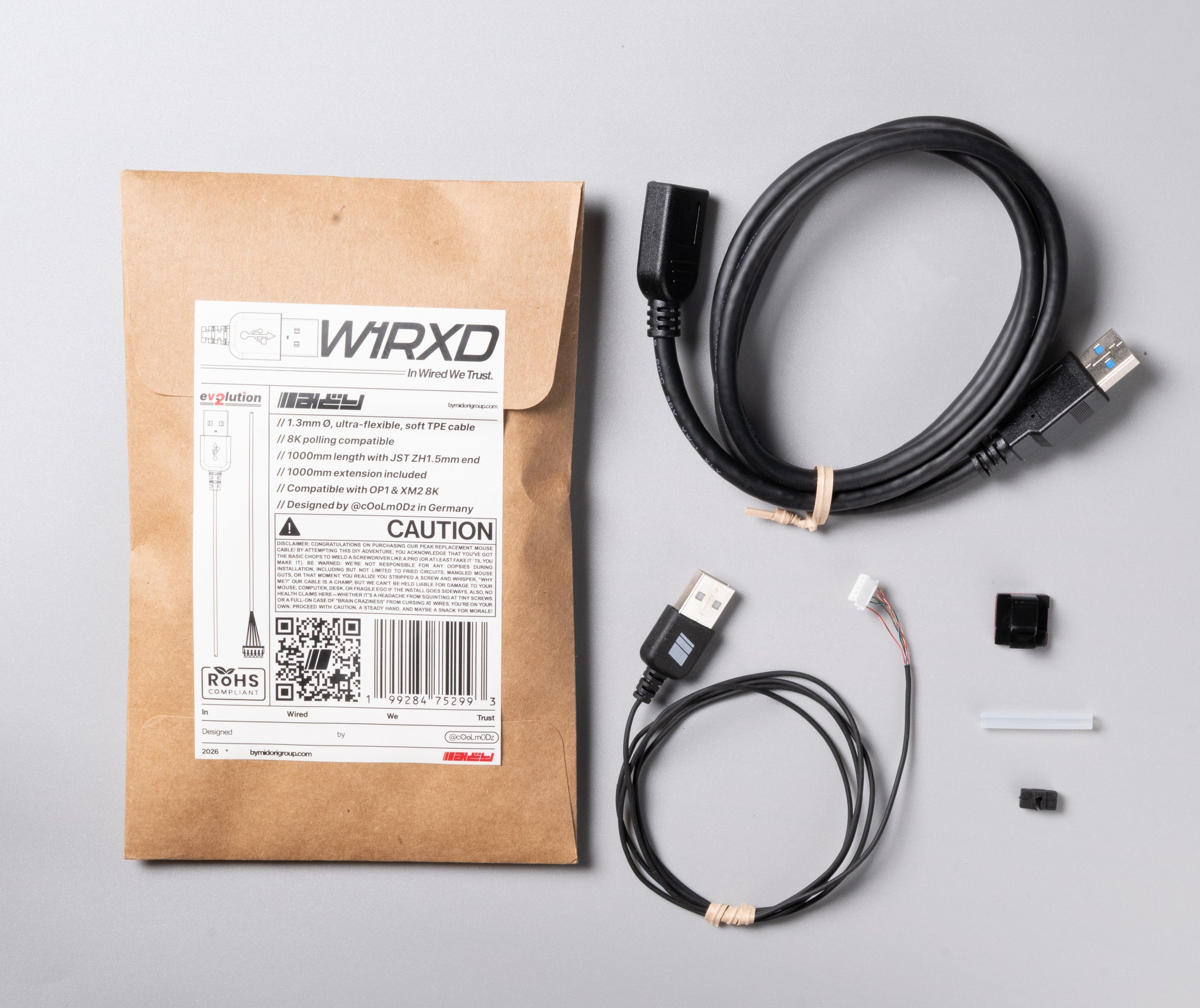 W1RXD eV2lutionは、世界で最も軽く、最も柔軟なゲーミングマウス用ケーブルを目指して開発されました。前モデルのW1RXDをさらに進化させ、耐久性と使い心地を向上させています。